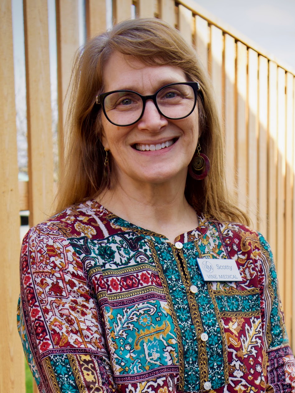 Hi. I’m Scotty and serve as the Executive Director at Vine. I grew up here in Yamhill County and graduated from Mac High and Linfield University. After attending graduate schools in Oklahoma and Ohio, I returned to the PNW with my husband Chuck and we raised 4 delightful daughters.